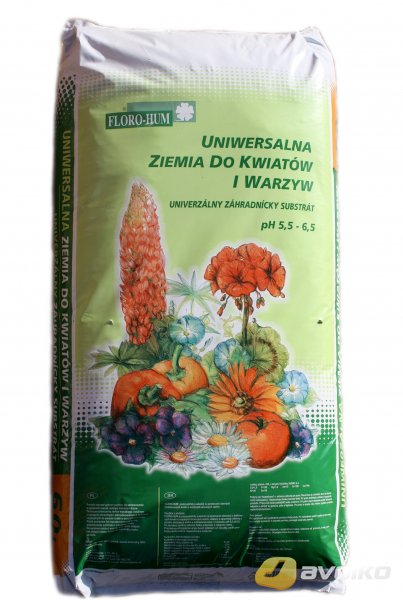 UNIVERZÁLNA zemina PRE KVETY A ZELENINU Zloženie: vysoká rašelina, nízka rašelina, piesok, minerálne hnojivo NPK mikroelementy pH v H20: 5,5-6,5 Kapacita balenia: 20l, 60l Koncentrácia soli pod 2,5 g NaCl / dm3 Sypká forma, frakcia 0-30 mm